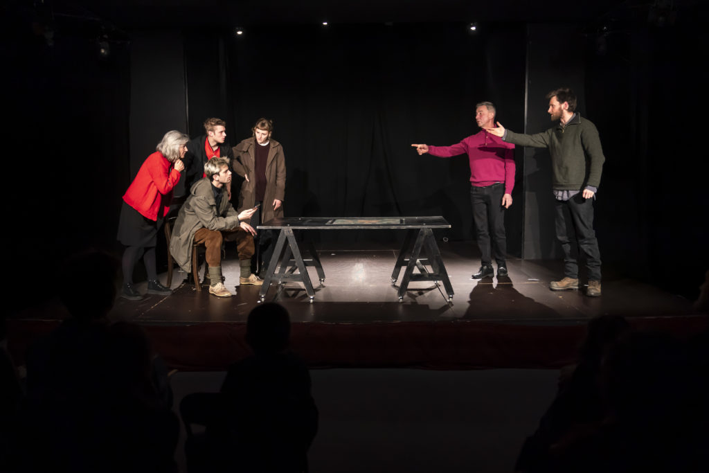 » Hors sol « est une création du Théâtre des Travaux et des Jours, écrite et jouée par des comédien.ne.s amateur.e.s et professionnel.le.s, avec le soutien du Centre culturel de Durbuy.
