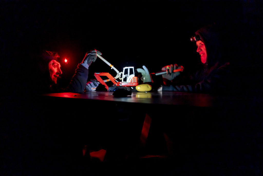 » Hors sol « est une création du Théâtre des Travaux et des Jours, écrite et jouée par des comédien.ne.s amateur.e.s et professionnel.le.s, avec le soutien du Centre culturel de Durbuy.